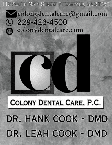 Colony Dental Care, P.C. Listed in Health & Wellness Contact 112 South Main Street Fitzgerald, GA 31750 229-423-4500 Website Contact listing ownerSend Message Name Email Phone Number Message