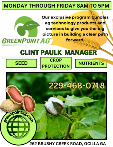Green Point AG Listed in Agribusiness Contact 262 Brushy Creek Road Ocilla, GA 31774 229-468-0718 Website Contact listing ownerSend Message Name Email Phone Number Message