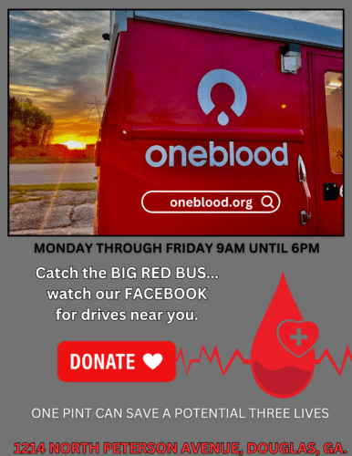 One Blood Listed in Health & Wellness Contact 1214 North Peterson Avenue Douglas, GA 31533 912-383-7339 Website Contact listing ownerSend Message Name Email Phone Number Message