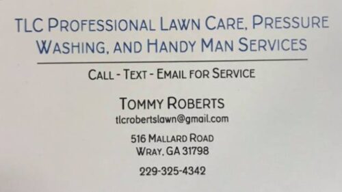 TLC Professional Lawn Care & Handyman Services Listed in Home/Commercial Improvements Contact 516 Mallard Road Wray, GA 31798 229-325-4342 Contact listing ownerSend Message Name Email Phone Number Message